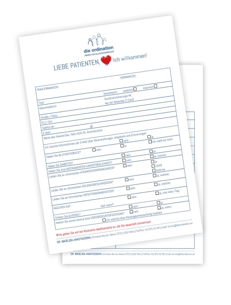 Wir bitten alle neuen Patienten und Patientinnen, den